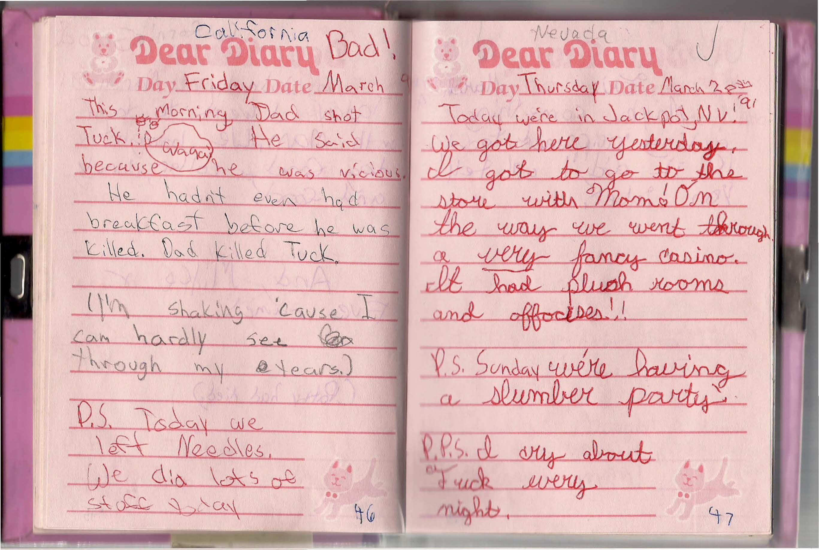 “You’ll have to work to catch up to the other kids, they have a few weeks’ head start,” she said. “Do you want some help picking out books?” I shook my head, and in minutes had a stack that took Mom and me two trips to load into the car. We had library bags with the string top, so we had to hold the bags to our chests so the books didn’t break free from the cheap plastic material. I was back each week, with every single book in those bags on my “read” list, even the little kids’ books we picked out for the younger ones. I gave Heidi one-page book reports so she would know I’d read them. After the first week, the amazement on her face changed to a welcoming smile. She wrote me letters for years General Delivery or to P.O. Boxes in Nevada or Oregon or Arizona, telling me about her husband, sons, and her dog. Another touchstone, and a very grateful little girl.